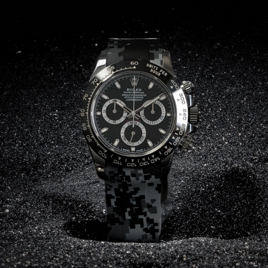 Las correas de caucho de Tempomat ofrecen una apariencia única y alternativa a la tradicional pulsera de acero, permitiendo al cliente expresar su identidad y personalidad a través de su muñeca, con la posibilidad de elegir entre patrones de camuflaje y colores sólidos.